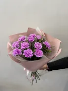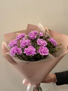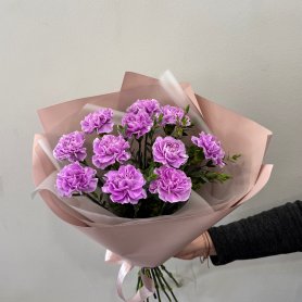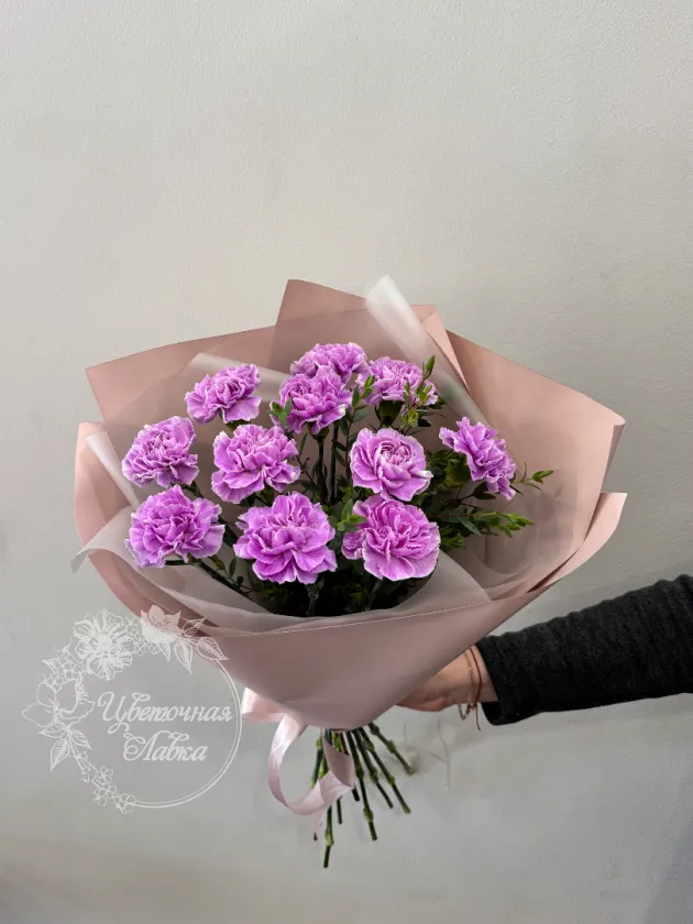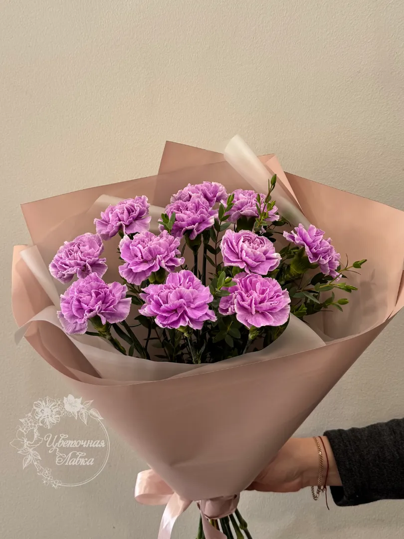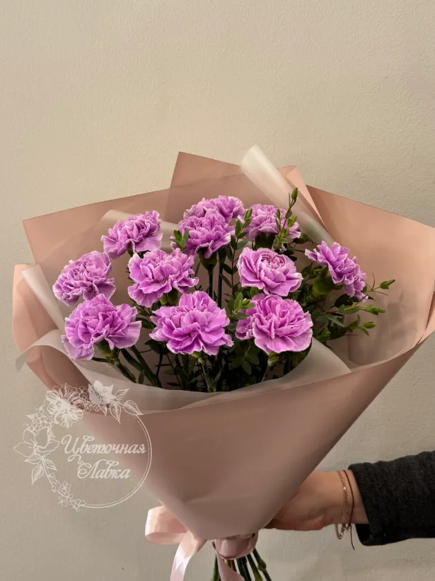 Букет с лавандовой гвоздикой всегда интересен своей необычностью.