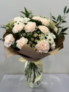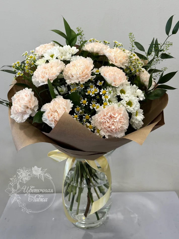 Подарите себе или близким утреннее настроение с букетом «Утренняя свежесть», гармонично сочетающим яркие и нежные оттенки. В его состав диантус, кустовая хризантема, танацетум, итальянский рускус и пистация создают ощущение свежести и природной красоты. Букет будет идеальным украшением любого интерьера или замечательным подарком.