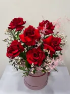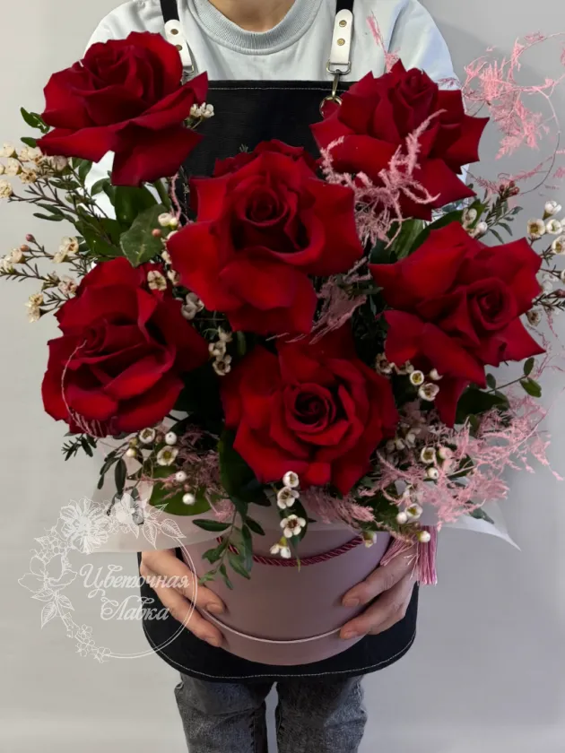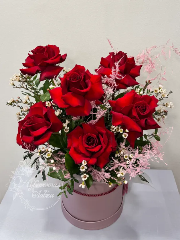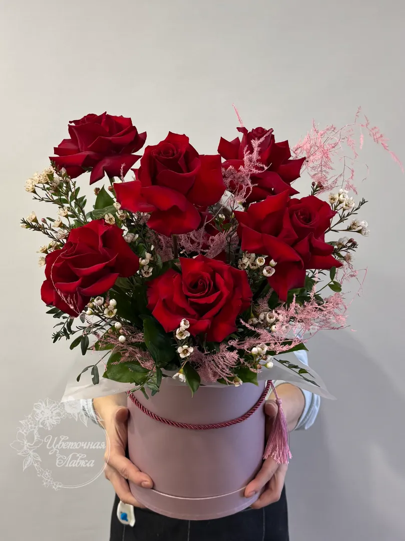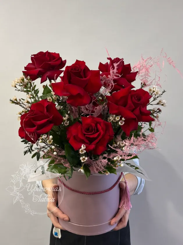 Все филиалыКрасные розы в шляпной коробке