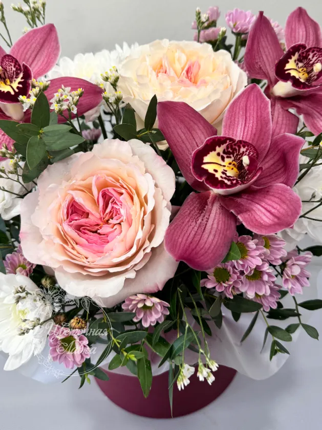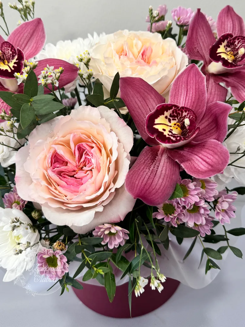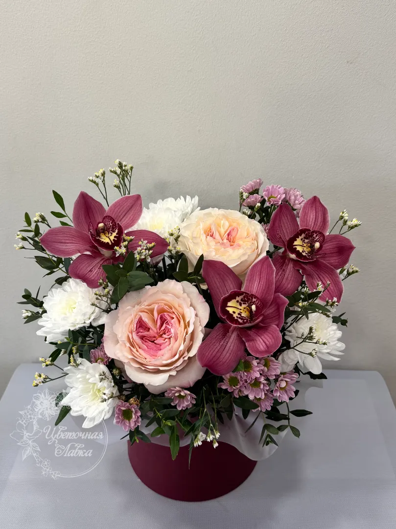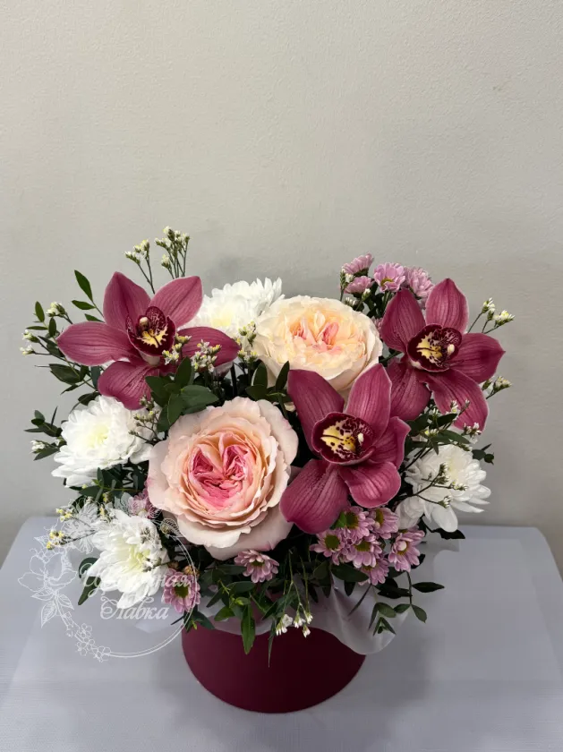 Все филиалыКомпозиция в шляпной коробке «Мила»